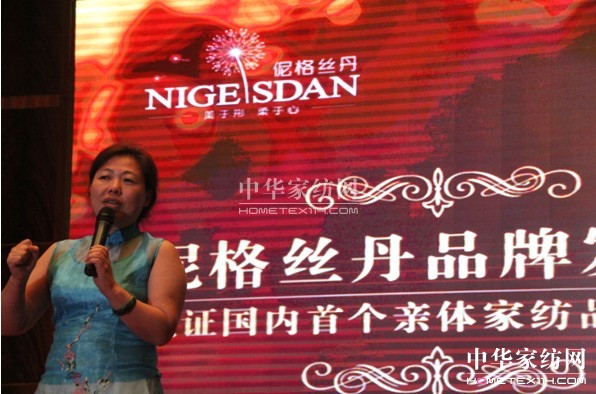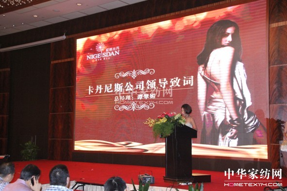 会议开始,卡丹尼斯总经理谭翠媚,发表开幕致词。谭总非常感谢在场的每一位嘉宾,还表明了要做强、做大这个品牌的信心。谭总认为伲格丝丹这个品牌就要有蒲公英强大的生命力,只要风吹到去哪里,就会在那里扎根、发展。